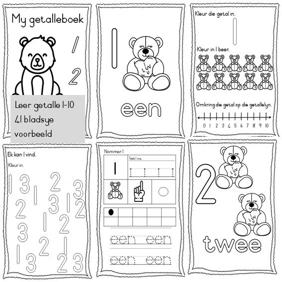 • Leer Getalle 1–10 (Boek 2) – 41 bladsye