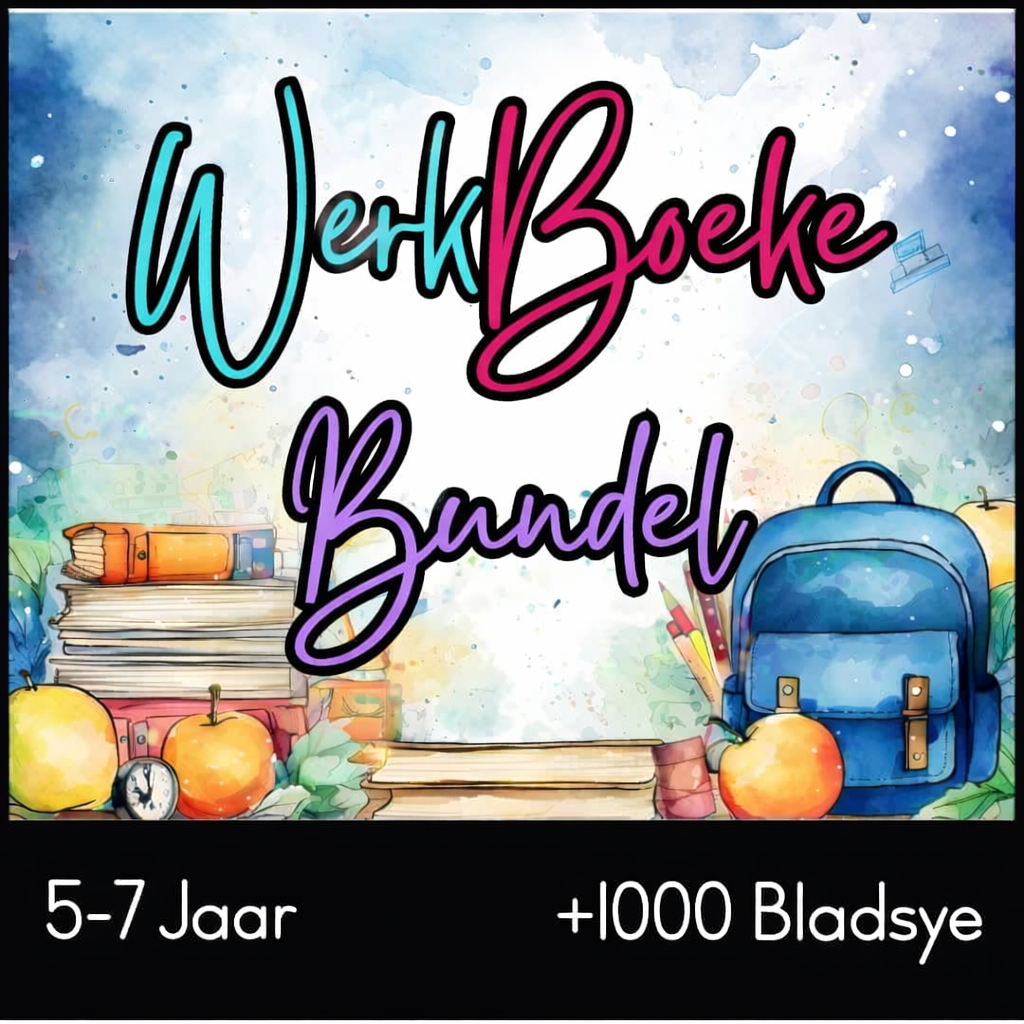 Gee jou kind die uiteindelike leerhupstoot met hierdie 16 Werkboek Drukbare Bundel, propvol 1000+ stimulerende aktiwiteitsbladsye, spesiaal ontwerp vir kinders van 5–7 jaar.